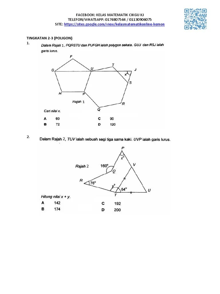 Kssm18 2b 02 sudut pedalaman poligon. Interactive worksheet bab 2 bentuk piawai matematik tingkatan 3. Maths online worksheet for 2. #t2c4 | tingkatan 2 : Kssm18 2b 04 hasil tambah sudut peluaran poligon .